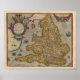 Mapa antigo da Inglaterra de Ortelius 1573 em cor com elementos decorativos. Parece que o excelente se cruzou e foi enquadrado.