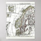 Pôster Mapa da suecia Islândia Noruega Dinamarca