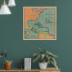 Poster Mapa da Vintagem do Caribe (1909)