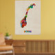 Um mapa de aquarelas da Noruega sobre um fundo de colheita