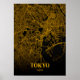 Poster Mapa de cidades do Japão em Tóquio - Dourado mapa