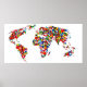 Ilustração de um mapa de toda a Terra feito de uma montagem de bandeiras do mundo de várias nações do globo. Imagem disponível em vários presentes e produtos. Posters. Impressões.