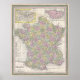 Poster Mapa de Vintage da França, 1853