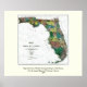 Poster Mapa do Estado da Flórida de 1856 por Columbus Dre