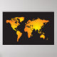 Poster Mapa do mundo brilhante em laranja e amarelo