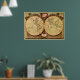 Pôster Mapa do Mundo do Hemisfério Duplo do Capitão Cook