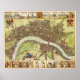 Poster Mapa do século XVII de Londres, Inglaterra, por W.