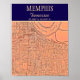 poster de qualidade de excelente com um mapa ocular de Memphis Tennessee junto com suas coordenadas geográficas.