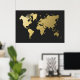 Poster Mapa Dourado do mundo em Black Chevron