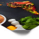 Mapa Global de Cuisinas: Visão Superior do Mapa Mundial Criado com Ingredientes e Produtos Hortícolas Comidas. Explore uma variedade de culinárias globais com esta visão de topo de um mapa mundial feito de várias comidas