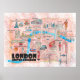 Poster Mapa Ilustrado de Londres no Reino Unido com Ponto