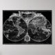 Este é um mapa mundial com um esquema de cores preto e branco. O mapa foi originalmente produzido em 1775.