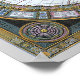Ilustração vintage mapa mundial antigo apresentando ambos os hemisférios por Claude Auguste Berey, 1688. Este antigo mapa mundial internacional apresenta os hemisférios oriental e ocidental, bem como os pólos norte e sul e todos os continentes. Caixas de texto circundam os hemisférios deste atlas, uma borda dourada ornamentada decora as bordas e um pergaminho decorativo está no topo.