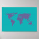 Pôster mapa mundial azul
