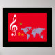 Uma boa ideia para decorar um quarto para um músico. A imagem de uma nota musical branca e o atlas mundial
