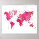 Pôster Mapa Mundial de Aquarela Rosa