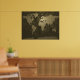 Mapa do mundo em tons dourados com detalhado chão oceânico ondulado e terra polida simplificada, dando efeito a um pedaço de metal fundido.