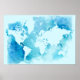 Poster Mapa Mundial em Blues de Aquarela