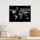 Mapa Mundial composto pelos nomes de cada país. Praticamente todos os países são mostrados, exceto alguns dos mais pequenos.