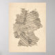 Um mapa da Alemanha feito a partir de uma colagem de músicas antigas e antigas, incluindo algumas notas e pontuações escritas à mão, sobre um fundo antigo.