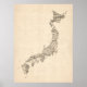 Um mapa do Japão, feito a partir de uma colagem de músicas antigas e antigas em um fundo antigo.