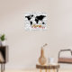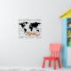 Uma sugestão de decoração agradável de um mapa mundial com notas de música e texto 'música para o mundo'