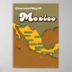 Mapa ilustrado do México e regiões circundantes em estilo retrô ou vintage vestido.