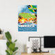 Desfrute de um lembrete constante de suas férias românticas na lua de mel na ilha Caribe da Jamaica, com este poster personalizável, com o mapa da ilha, com cenas e pôrs do sol de praia tropicais, e um fundo de aquarela oceânica. Personalize com seus próprios nomes e suas datas de lua de mel. Você também pode Editar usando a Ferramenta Design, para mover o círculo vermelho ao redor do mapa para realçar em qual recurso você estava hospedado. Também mova o texto 'seta para o coração' e 'Nós estávamos aqui!' para apontar para o seu recurso. Se você precisar de uma seta apontada para a direita, encontre-a na Ferramenta Design, passe o mouse sobre ela e clique no olho para torná-la visível (não se esqueça de esconder a seta apontadora para a esquerda se você usar esta opção!) Totalmente exclusiva de você, e uma maneira perfeita de invocar memórias daquela época especial em suas vidas.