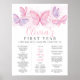 Primeiro aniversario de Milestone de Poster de Ano Primeiro. Este design de borboleta rosa e roxa é um tema bonito para a sua menina. Um sinal popular de primeira festa de aniversário para mostrar aos convidados todos os seus pequenos marcos nos últimos 12 meses. Itens correspondentes disponíveis.
