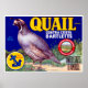 Etiqueta de fruta para a marca Quail Contra Costa Bartlet, na Califórnia.