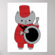 Conhece um baterista ou alguém numa banda? Este poster bonitinho tem um gatinho cinza vestindo um uniforme de banda vermelho e preto marchando enquanto toca o tambor de baixo.