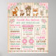 Cartaz de marco de aniversário temático de floresta feminina / estatísticas de nascimento em quadro de giz com adoráveis animais da floresta: coelho, cervo, esquilo, urso, raposa, ouriço, esquilo & coruja. Os campos de texto são totalmente editáveis e você pode alterar as categorias se necessário. Clique no botão "Personalizar Mais" se desejar alterar o estilo da fonte, cores / reorganizar a disposição do texto.