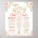 Lindo cartaz de marco de aniversário rosa, rosa e dourado com floral em aquarela e um grupo de adoráveis animais da floresta