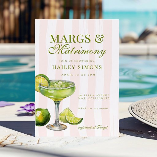 Add a festive touch to your celebration with this Margs & Matrimony Margarita Bridal Shower Cards & Gifts Sign, perfect for guiding guests to place their cards and presents. Featuring light pink stripes and a watercolor margarita with fresh lime slices, this cheerful design is ideal for bridal showers, bachelorette parties, and margarita-themed celebrations. Available as an instant download PDF for easy printing or professionally printed and shipped by Zazzle for a polished party display.