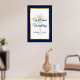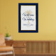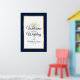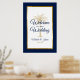 Personalize este marinho azul e dourado sinal de "Bem-vindo ao nosso Casamento" com seu próprio toque especial. Este design moderno apresenta um roteiro moderno, texto azul-marinho e dourado, incluindo os nomes da noiva e do noivo e a data do casamento, uma palmeira artística e uma estrutura de folhas de ouro metálicas com uma fronteira azul-marinho. Se precisar de ajuda ou itens correspondentes, entre em contato comigo.