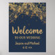 Elegante azul-marinho personalizado com luzes de cordas de ouro e sinal de casamento "Bem-vindo ao nosso casamento"
