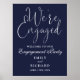 Este sinal de boas-vindas ao noivado de script elegante azul-marinho pode ser personalizado com todos os seus nomes e data especial. Projetado por Thisnotme©