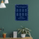 Sinal de poster de 16 assentos modernos. Este design apresenta um fundo azul marinho com uma borda falsa de brilho. Os designs são ilustrações/gráficos impressos planos - NÃO O GLITTER REAL.