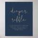 Este cartaz de rifa de fralda apresenta uma fonte escura manuscrita e um design moderno minimalista com uma combinação de cor azul e dourada marinho. Este sinal de jogo de fralda é a adição perfeita ao seu evento de chá de fraldas. Todas as cores são editáveis para corresponder ao seu tema!