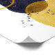 Uma ilustração moderna e contemporânea da abstrato, que tem duas formas maiores em ouro e azul marinho escuro, com um círculo dourado e salpicos de marinho e tinta dourada. Um desenho simples, mas elegante.