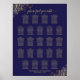 Este lindo gráfico de assentos de casamento de 23 mesas apresenta um design simples, mas elegante, com texto em ouro sobre fundo azul marinho e filigre floral de ouro herdado nos cantos. O título da caligrafia do script diz: Por favor, encontre sua mesa. Contém atribuições de mesa para 230 convidados em 10 convidados por mesa.