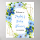 Este lindo e elegante sinal de boas-vindas apresenta cor d'água flores azuis e azuis marinhos com folhagem. O texto combina o script manuscrito e as fontes serif para uma aparência na moda e moderna. Isto é perfeito para um primavera ou chá de fraldas rústico de verão.