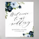 cor d'água pintada, flores azuis poeirentas e azuis-marinho e roteiro preto. O texto e as cores desta poster de sinal de casamento podem ser editados.