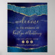 Poster Marinho Elegante Blue & Dourado Casamento Agate Be