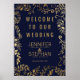 Ouro elegante, moderno e chic faux e padrão floral azul de marinho de tendências desenhado à mão, poster de boas-vindas de casamento. Este design clássico e sofisticado é perfeito para o casal de competição de tendências e na moda. Personalize com sua própria mensagem na frente, assim como um monograma personalizado inicial no verso. Todas as impressão de fotos.