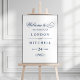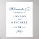 O símbolo de boas-vindas de marinho azul de design formal apresenta uma bela tipografia que combina um tradicional roteiro de caligrafia florescente com a letra clássica de bloco. Inclui um sotaque de design de rolagem decorativo. O texto personalizado pode ser totalmente personalizado com um monograma dos nomes da noiva e do noivo e da data do casamento. Compre nossa Coleção de Casamentos Azuis do Marinho Elegante Clássico para coordenar designs.