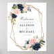 Um design floral com uma estrutura geométrica moderna e flores cor-de-água rosadas e cor-de-rosa. O texto e as cores neste poster de sinal podem ser editados.