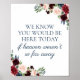 Use nosso marinho rústico, marsala, e flor rosa "Sabemos que você estaria aqui hoje se o céu não estivesse tão longe" para honrar seus entes queridos mortos. O texto é perfeitamente personalizável. Use a ferramenta "Personalizar este modelo" do Zazzle para inserir suas próprias informações. Se você precisar alterar o posicionamento das caixas de texto, a cor ou o tamanho da fonte, basta clicar no botão "Clique para personalizar mais" para alterar essas coisas. Certifique-se de verificar nossa grande seleção de itens coordenadores navegando na coleção Rustic Marinho e Marsala Floral Wedding!
