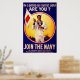 Marinho Vintage nos EUA Ele está recebendo o sinal do nosso país. Junte-se ao Marinho. Poster de recrutamento de Marinho dos EUA mostrando marinheiro com sinalizador de sinal. Poster continua: Para obter informações, aplique-se à sua estação de recrutamento ou à sede da Liga Marinho mais próxima. Este poster foi lindamente restaurado e melhorado.