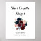 Este sinal de queimaduras de uma vela floral cor-de-rosa e arrojada é perfeito para um casamento rústico. O design apresenta cor-de-água rosa, pincel, marinho, colheres azuis e burgundy, rosas com folhagem verde que se juntam perfeitamente em buquês elegantes.